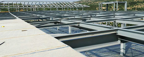 鋼骨架輕型板適用于輸煤棧橋、公共民用等建筑圍護屋面、樓面、墻面.鋼骨架輕型板由輕型鋼骨架、冷拔鋼絲網、改性水泥珍珠巖復合芯材(專有技術)、復合抗滲耐磨涂層(專有技術)組成.鋼骨架輕型板集輕質、承重、節能、防火、隔聲、泄爆、抗震等功能于一體,既保持了傳統鋼筋混凝土構件安全度高、使用壽命長的優點,又滿足了現代建筑對輕質、節能、環保的要求。