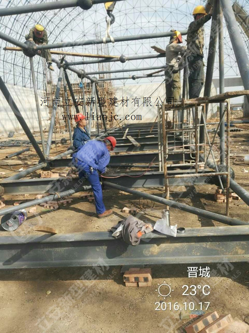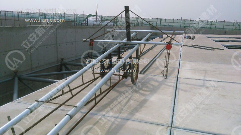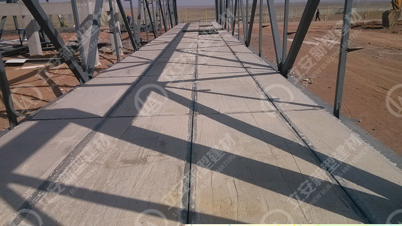 鋼骨架輕型板適用于輸煤棧橋、公共民用等建筑圍護屋面、樓面、墻面.鋼骨架輕型板由輕型鋼骨架、冷拔鋼絲網、改性水泥珍珠巖復合芯材(專有技術)、復合抗滲耐磨涂層(專有技術)組成.鋼骨架輕型板集輕質、承重、節能、防火、隔聲、泄爆、抗震等功能于一體,既保持了傳統鋼筋混凝土構件安全度高、使用壽命長的優點,又滿足了現代建筑對輕質、節能、環保的要求。